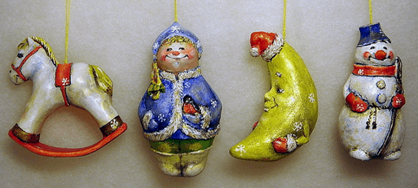 Для украшения ёлки и дома незаменимы изделия из измельченной бумаги. Из него изготавливают фигурки, маски, шары. В качестве сырья многие используют старые газеты, но типографская краска дает серый оттенок. Лучше купите в канцелярском магазине чистую газетную бумагу. Папиросная или микалентная для папье — маше не подходит. Технология изготовления проста: