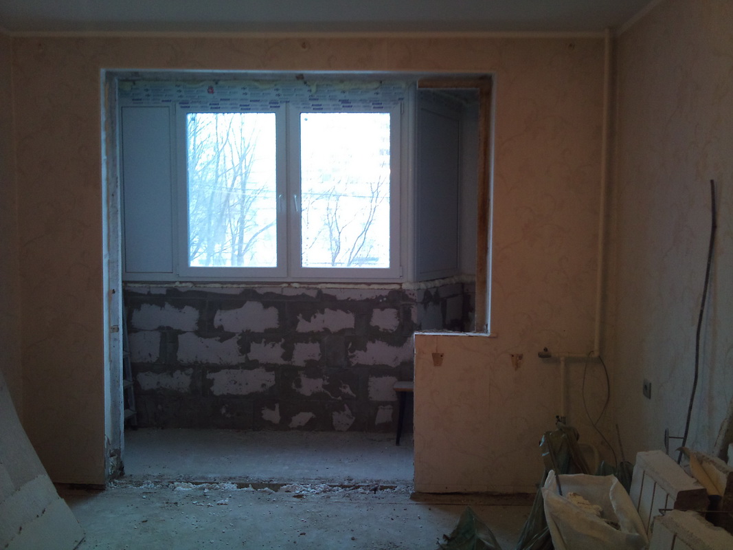 Зимой при сильных морозах и ветрах желательно первым сделать утепление балкона, а затем делать демонтаж простенка. Такая очередность избавит от выхолаживания всей квартиры через холодный балкон. Летом определение очередности не играет существенной роли.