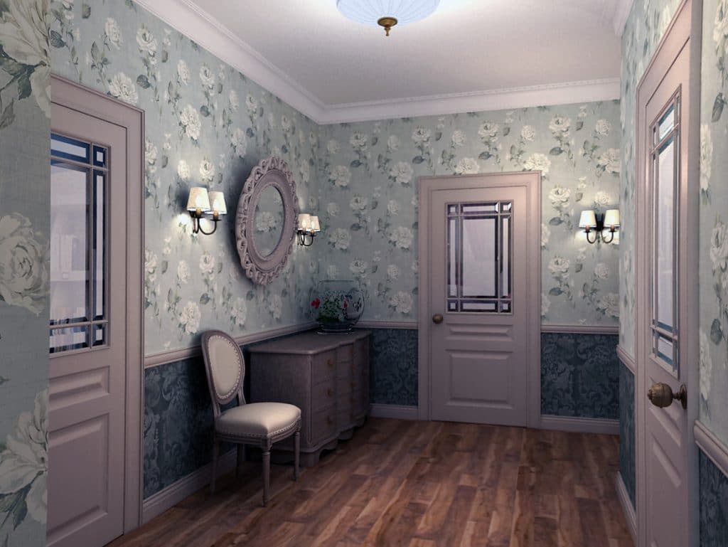 Обои в стиле прованс подойдут для прихожей в нежных пастельных тонах