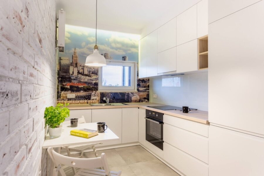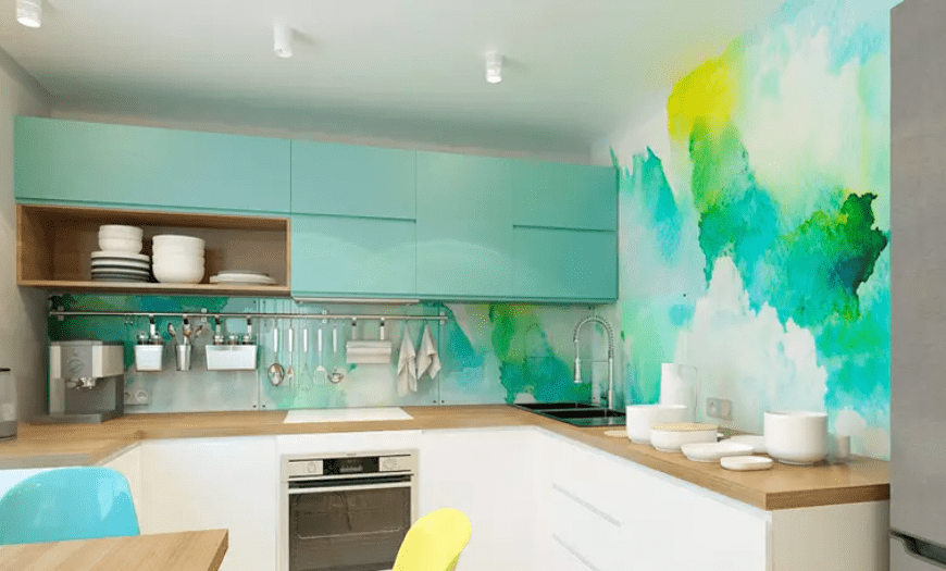Обои, расширяющие пространство в интерьере кухни: цветовая гамма