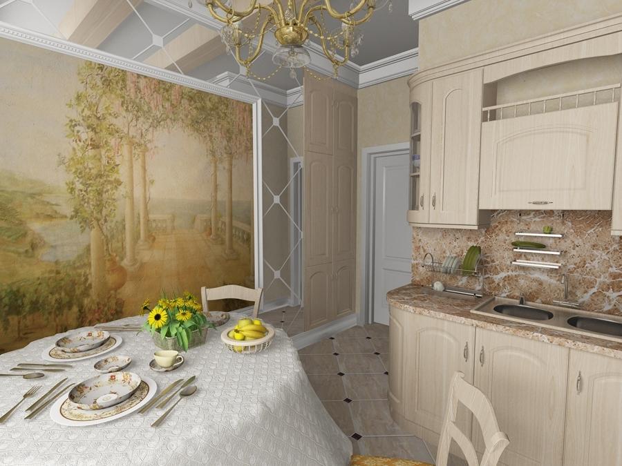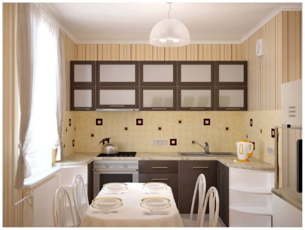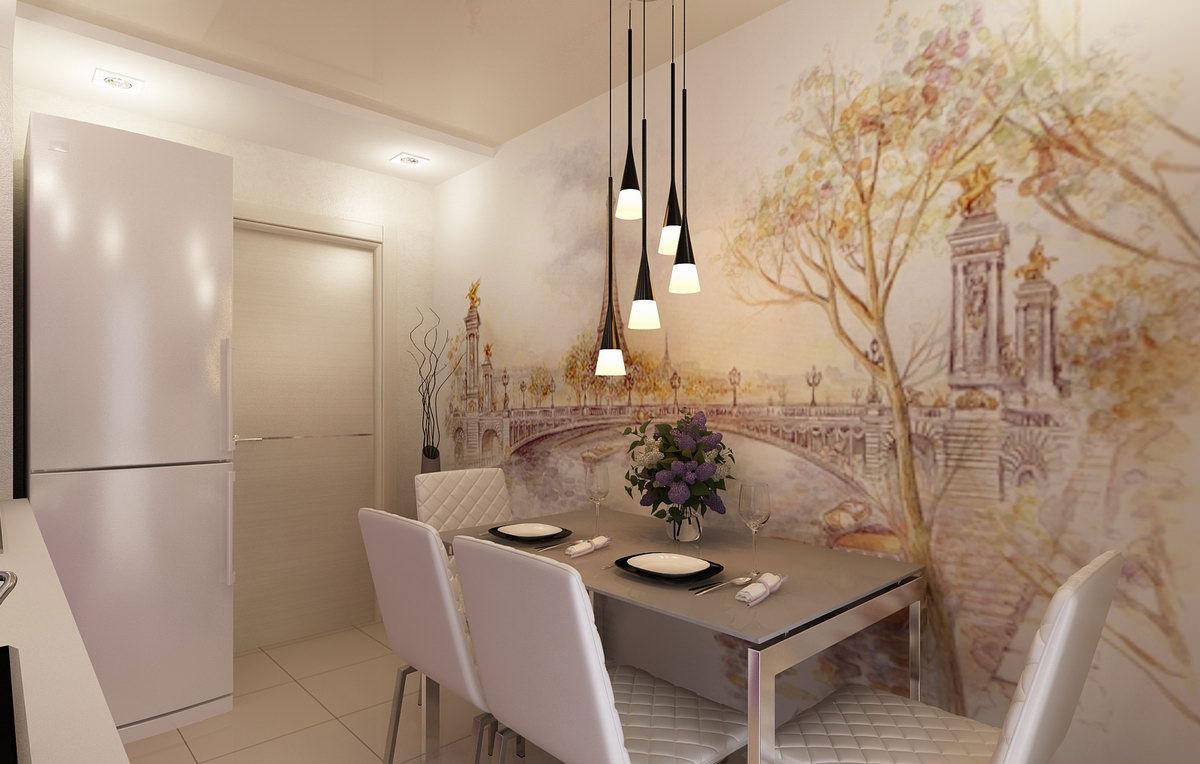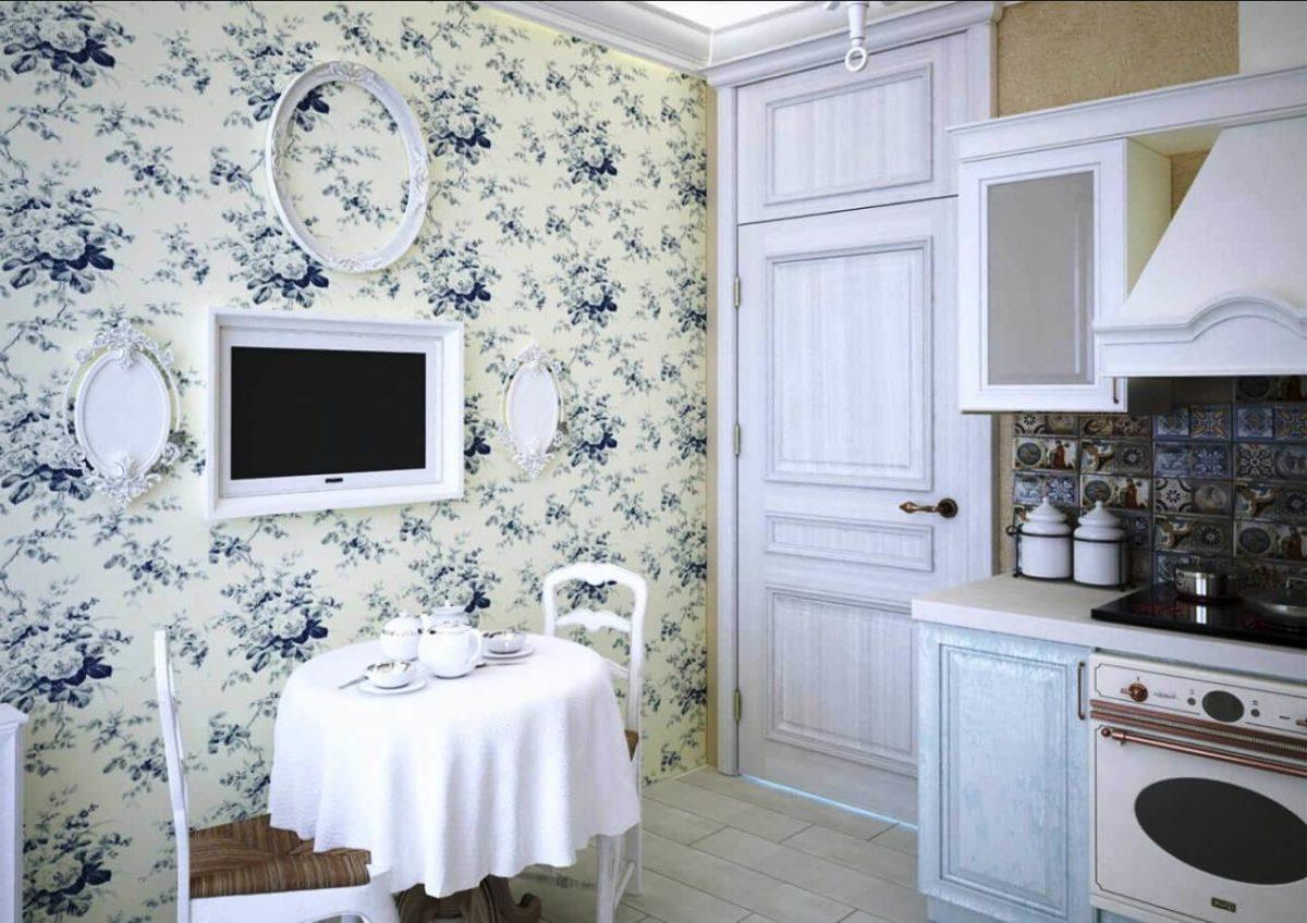 цвет и рисунок обоев на стенах. Обои для маленькой кухни следует выбирать светлых оттенков и без ярких цветовых пятен