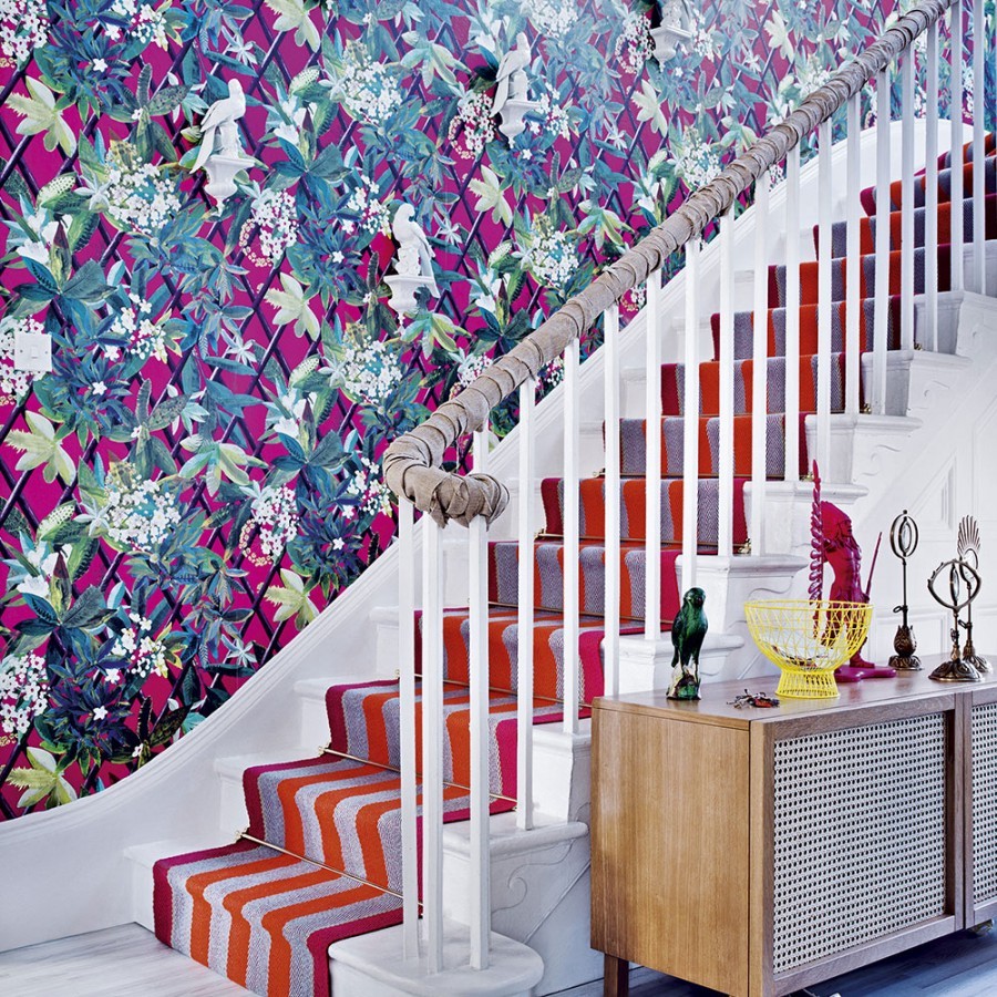 Отделка стен лестничного проема выполняется в зависимости от стиля дома. Отделка может быть в единой цветовой гамме с остальным помещением или стать его ярким акцентом, за счет цвета или крупного узора.