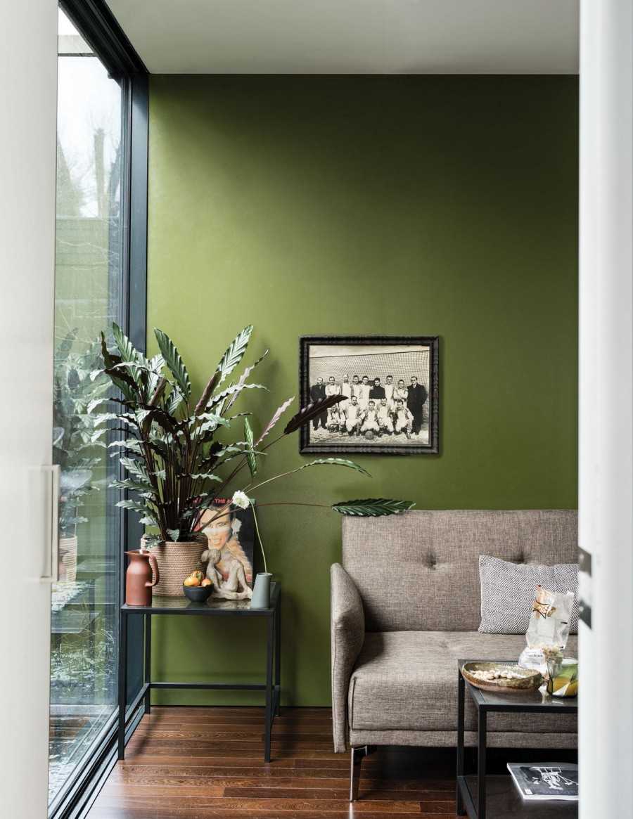В сочетании с ярко-розовыми или синими элементами наполнит комнату летними цветами. Не обязательно красить стены в оливковые тона, можно дополнить интерьер аксессуарами.