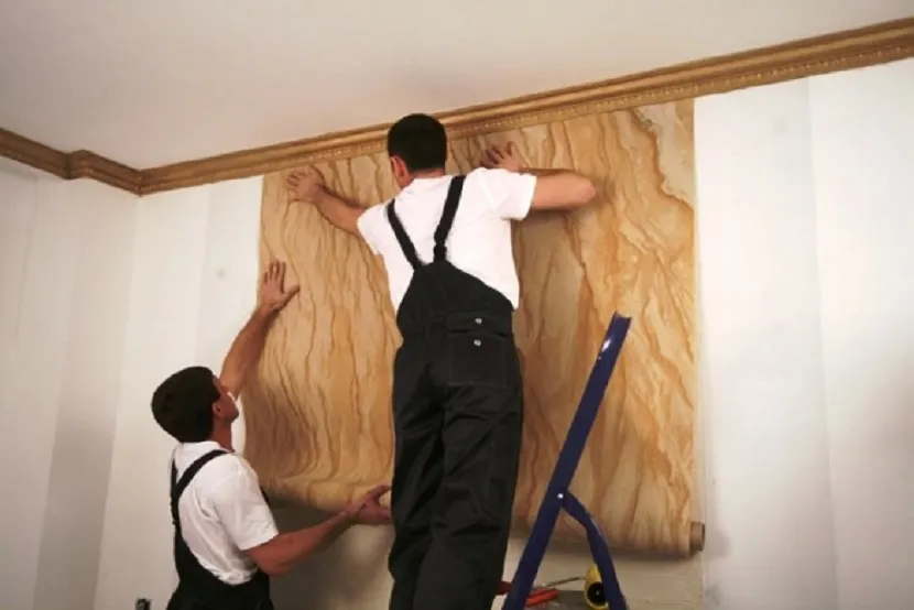 - Каменные обои можно приклеить на шпаклевку, штукатурку или покрашенную поверхность.