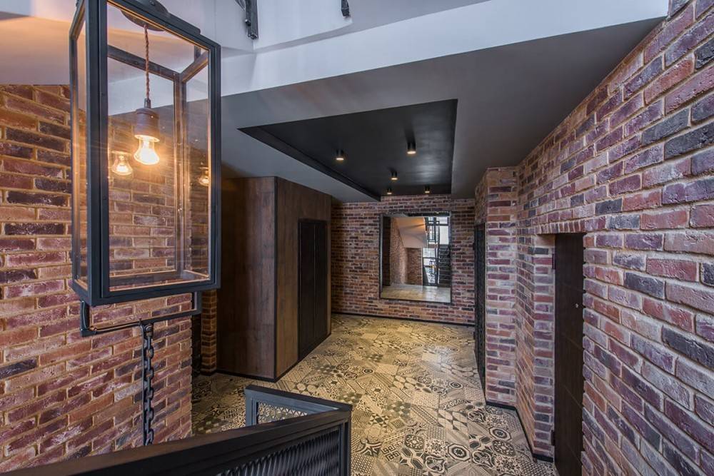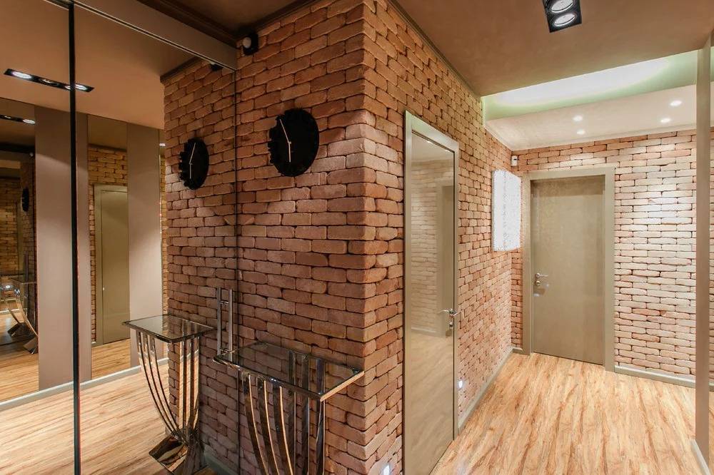Наиболее распространена кирпичная кладка или отделка стен под кирпич в прихожих, холлах и кухнях. Но если хозяин квартиры (или дома) хочет создать интересный интерьер, то использование такой облицовки допустимо во всем доме (особенно, когда это загородный дом).