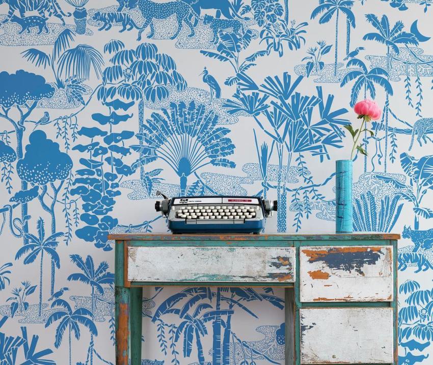 Великолепные варианты для оформления стен – синие обои, которые не только украшают, но также утепляют интерьер. Чаще всего они используются на выбранном фрагменте стены, например, над кроватью.