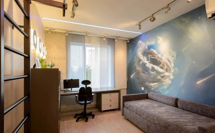 - Чаще всего в подобных помещениях клеят нейтрального цвета обои на бумажной основе. Они отличаются безопасностью и экологичностью. Также доступно много оттенков и рисунков. Единственный минус бумажных полотен – недолговечность, но так как подростки клеят на стены постеры, а малыши обрисовывают их – этот недостаток является не таким существенным.