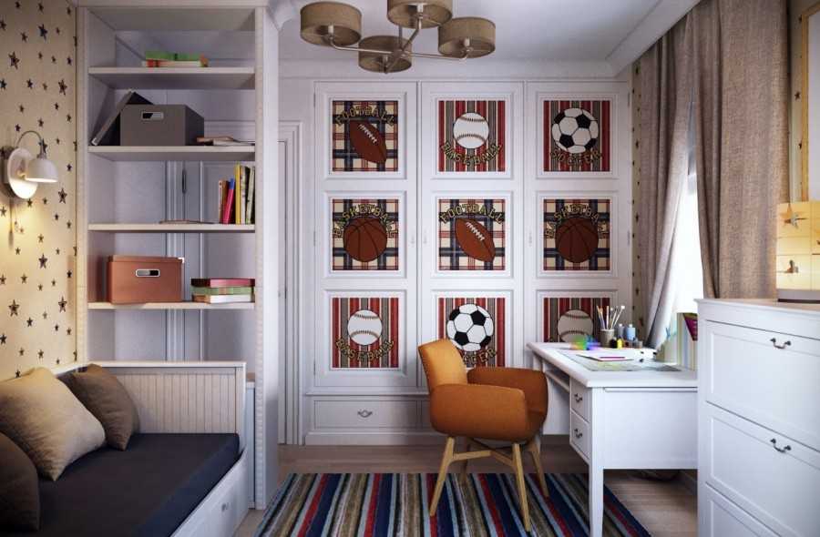 Основные цвета «на половинах» девочки и мальчика должны перекликаться. Например, оттенок может встречаться в части узора или в элементах рисунка на обоях «соседа по комнате»- дублироваться в машинном окрасе, одежде мультгероя и др.