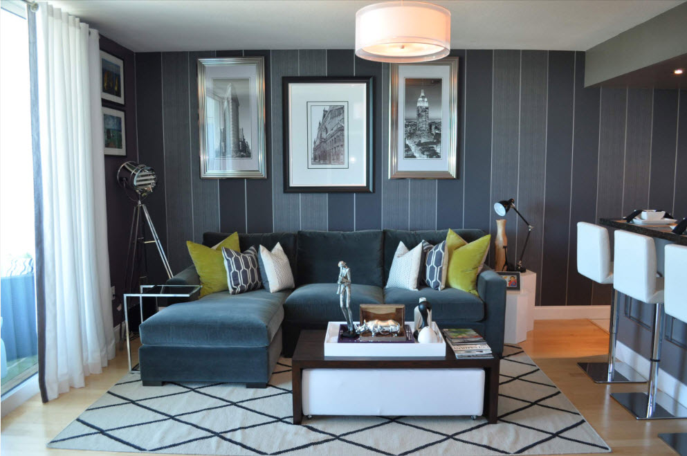 Чтобы комбинирование обоев стало удачным, стоит заранее в деталях продумать весь интерьер. Лучше выбирать настенное покрытие после приобретения мебели и предметов декора. Поскольку основная цель такого дизайна – подчеркнуть обстановку гостиной.