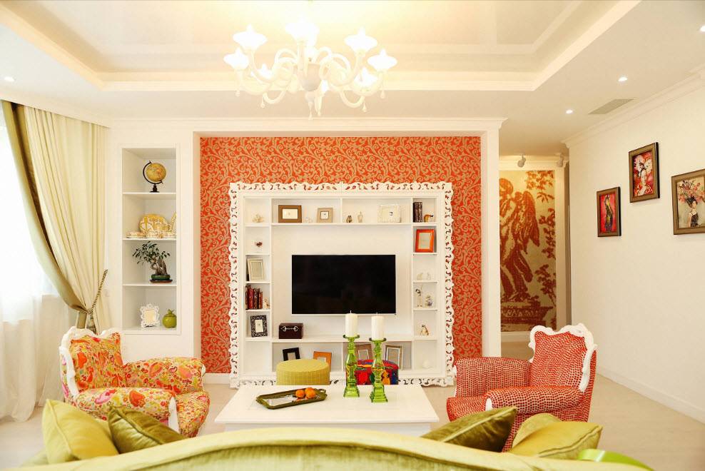 Ниже представлены фото образцы обоев для зала и идеи использования уже воплощенные в интерьере.