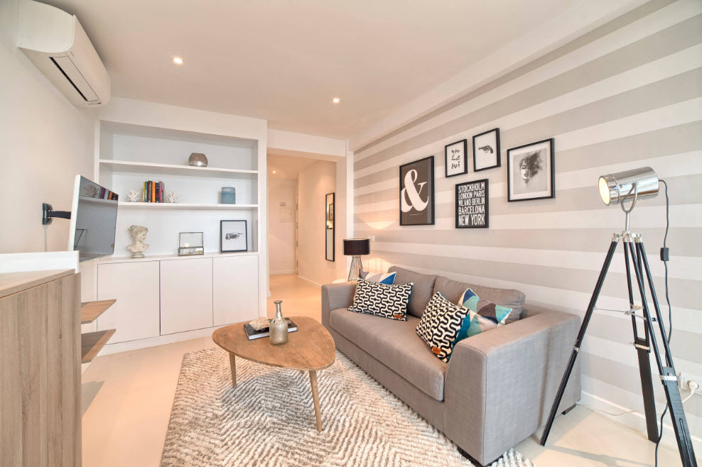 Полосатые полотна всегда были и остаются востребованными, поскольку делают самые обычные однушки яркими и динамичными. Полоски могут различаться по ширине, расцветке, изгибам, оригинальным переплетениям. Вертикальное расположение принтов увеличивает высоту стен, горизонтальное – расширяет комнату и понижает потолки.
