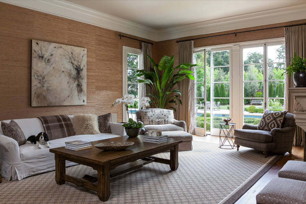 Бамбуковые обои выглядят гармонично при наличии натуральных материалов в интерьере
