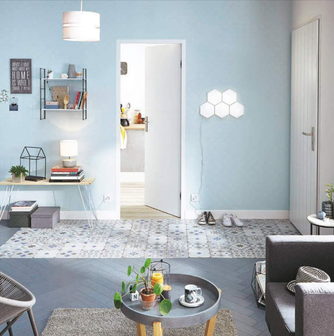 Просмотрев фотографии готовых интерьеров, можно выбрать подходящий вариант. Также стоит учесть площадь комнаты и высоту потолка. Светлые тона стен – хорошее решение для маленького плохо совещенного зала, поскольку они визуально расширяют пространство.