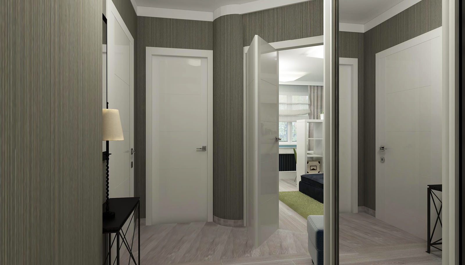 Специалисты советуют задействовать в дизайне не более трех основных оттенков. Например, это могут быть темные и светлые двери под обои в прихожую.