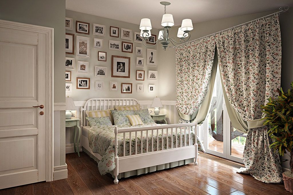 Родина прованса – южный регион с мягким климатом, поэтому интерьер должен быть светлым. Желательно, чтобы в спальне были большие окна.