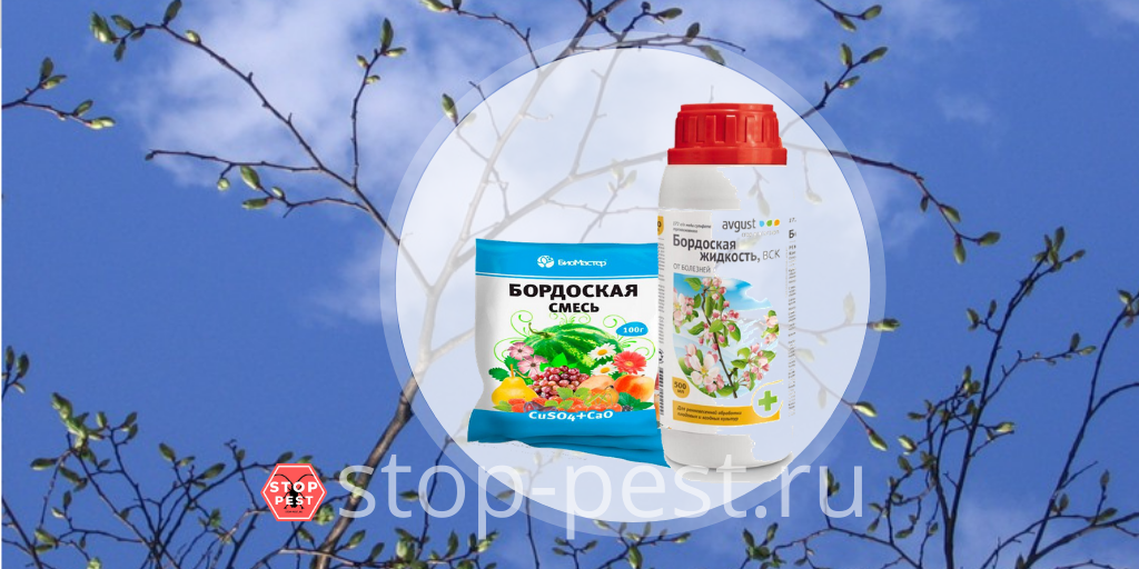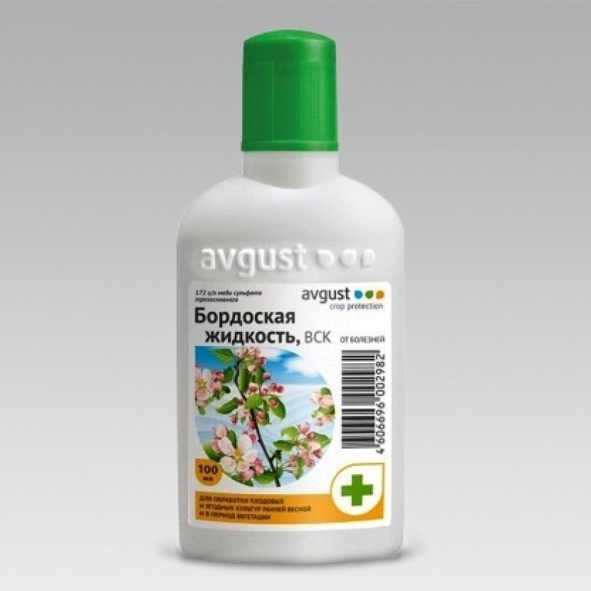 | Приготовление бордоской жидкости | 100 г медного купороса и 100 г извести на 10 л воды |