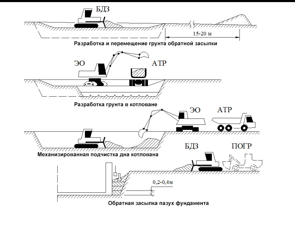 Весь процесс обратной засыпки должен производится в полном соответствии со строительными технологиями, описанными в СНиП 3-02-01-87. Вся работа подразделяется на следующие этапы.