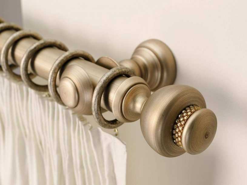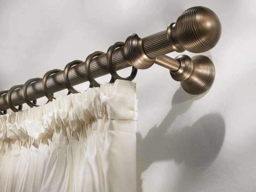 Металлические карнизы делают из сплава нескольких металлов. Такой сплав получается не только очень крепким и износостойким, но и выглядит очень презентабельно. К карнизу можно подобрать красивые металлические наконечники и стопоры.