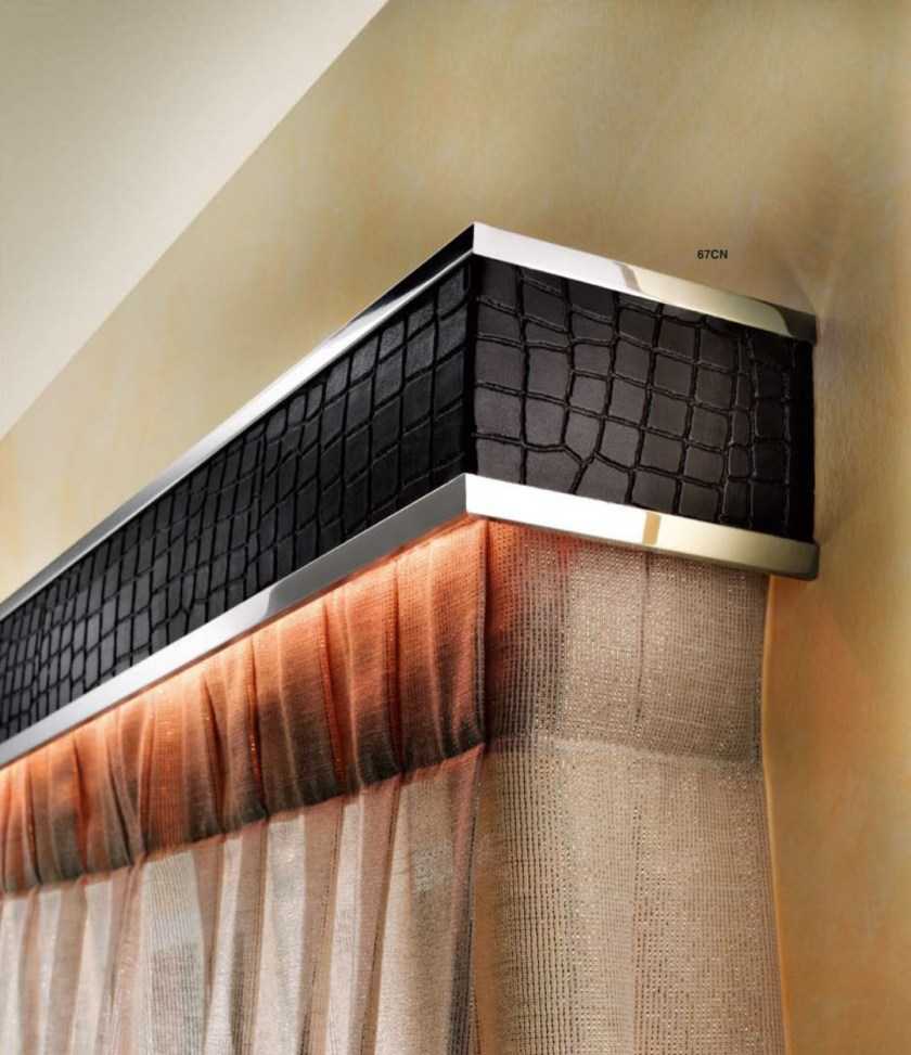 Способы крепления. Делятся на потолочные багетные карнизы для штор и стенные. Для первого варианта важна длина и габариты выступа – более толщины подоконника, иначе шторы не повиснут ровно, а будут лежать на оконном проеме. Стенные же рассчитываются так, чтобы полоса выше карниза оставалась соразмерной высоте всего помещения, иначе комната уменьшится. Структура поверхности – гладкие, вогнутые, выпуклые, рельефные. Благодаря этому подобрать карниз багет для штор разных видов оконных проемов не составит труда. Ими декорируют арки, эркеры, мансардные окна.