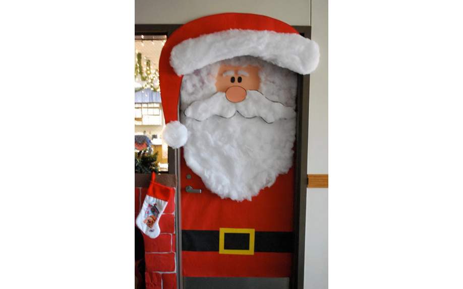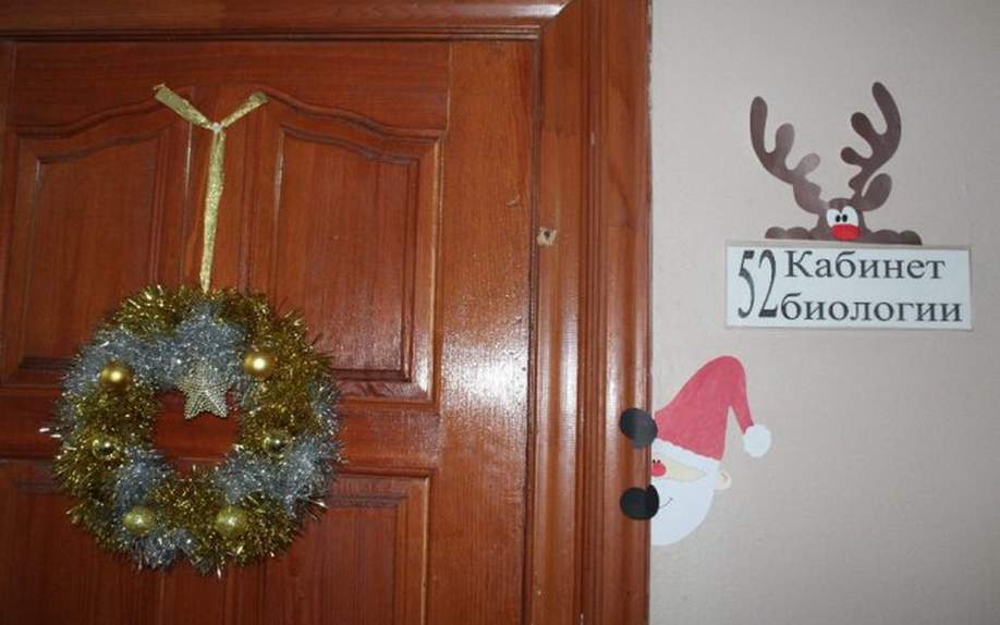 Двери в любом помещении, — это, своего рода, его визитная карточка. От их внешнего вида и состояния зависит первое и самое запоминающееся восприятие пространства. Двери школьного кабинета, как правило, не отличаются особенным разнообразием фактур и цветов, эти детали внутреннего пространства имеют достаточно стандартные внешние черты. Поэтому, при украшении дверей можно использовать всю свою фантазию, особенно если повод для декораций – Новый год.