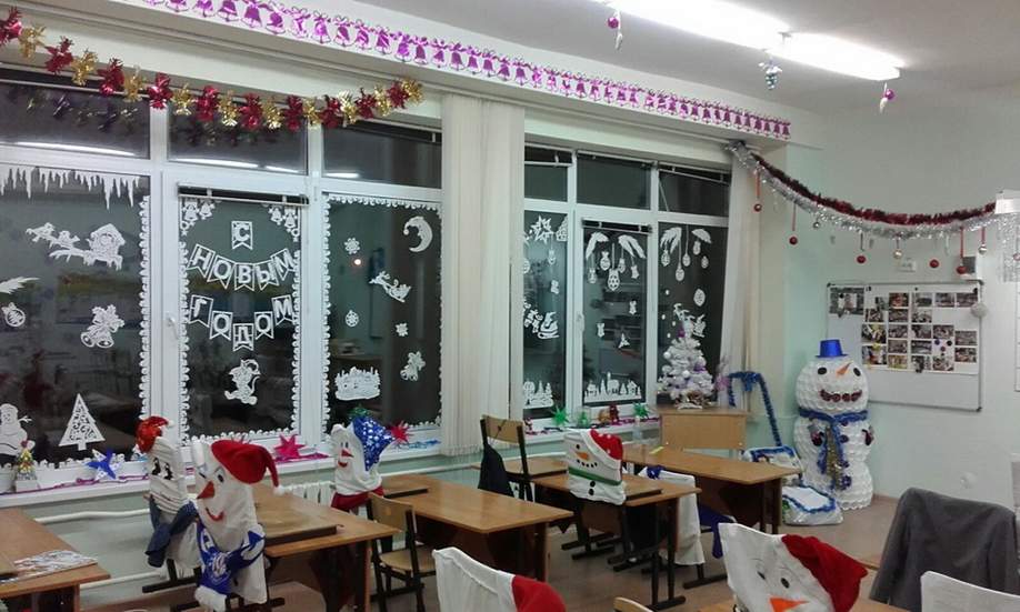 Поэтому внимание детей сконцентрировано именно на ней. Чтобы ученики смотрели на доску и получали удовольствие, можно украсить класс к Новому году своими руками
