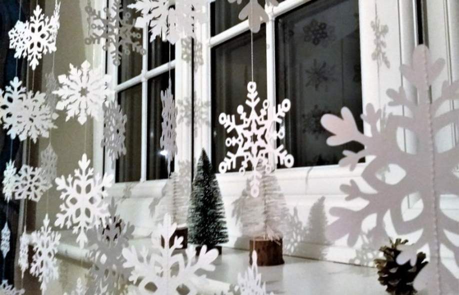 Самый быстрый способ преобразить классные окна — украсить их снежинками, вырезанными из белой бумаги. Узоры могут быть различными, по желанию. Вы можете использовать уже готовые шаблоны и схемы, которые достаточно приложить к листу и вырезать соответствующие места ножницами.