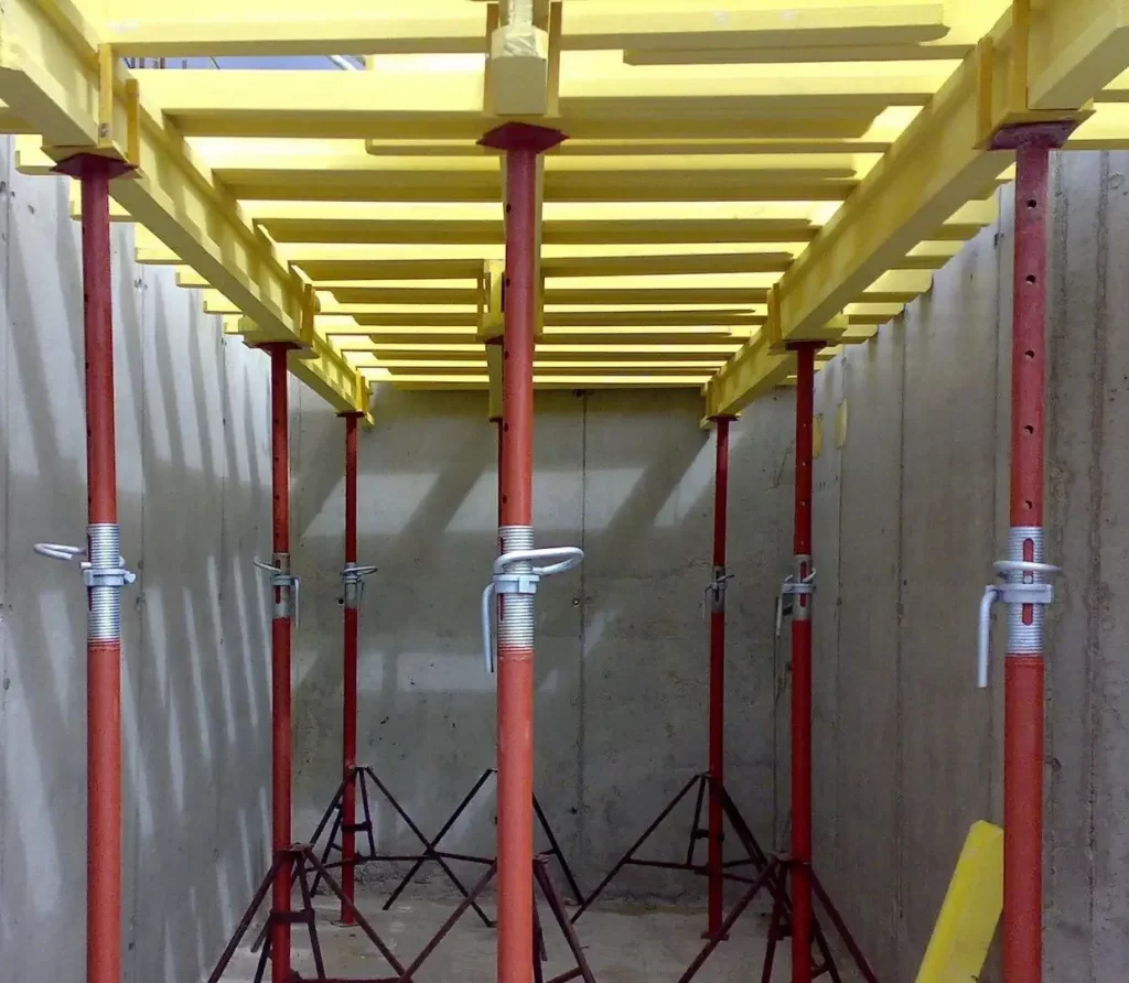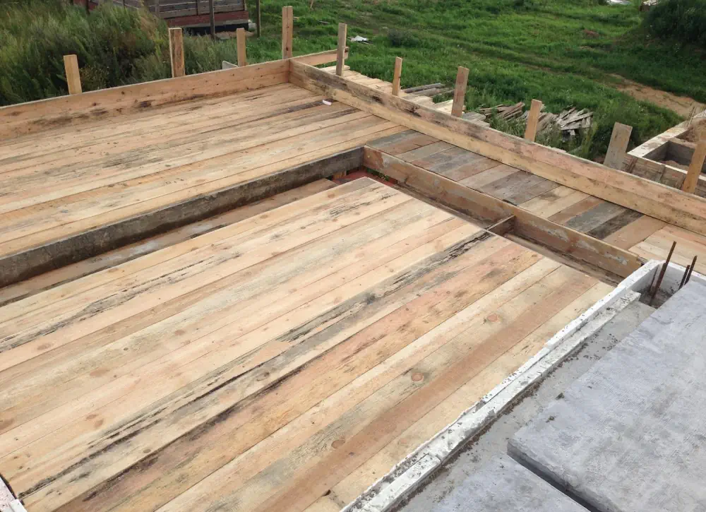 - Материал опалубочного оборудования. Чтобы зафиксировать доски, дощатые щиты, можно использовать и деревянные, и металлические элементы.
