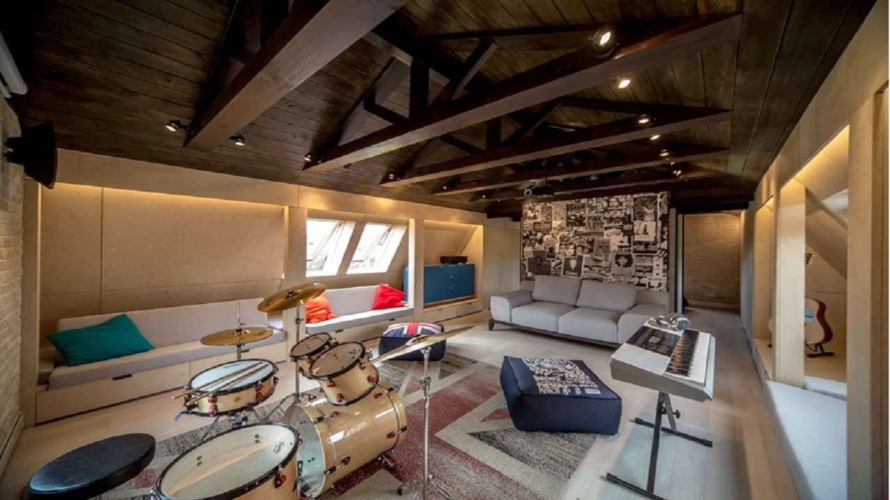 Тщательно проработанный дизайн мансардного потолка, добавит гостиной комфортности, сделает ее более открытой, современной и внешне привлекательной.