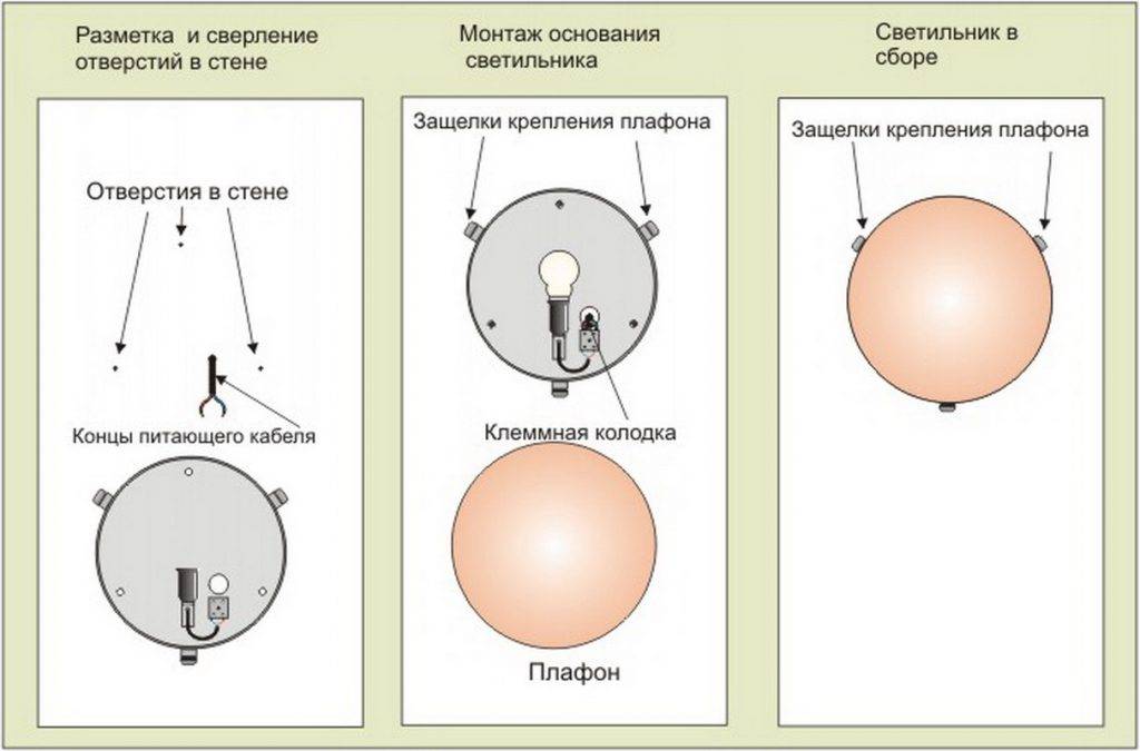 Освещенность пространства будет напрямую зависеть от количества и функциональности источников света. В начале установки осветительного прибора стоит узнать, какими лампами в данном случае разрешено пользоваться. Монтаж осуществляется с помощью дрели и нескольких саморезов или шурупов – все зависит от вида прибора и его строения.