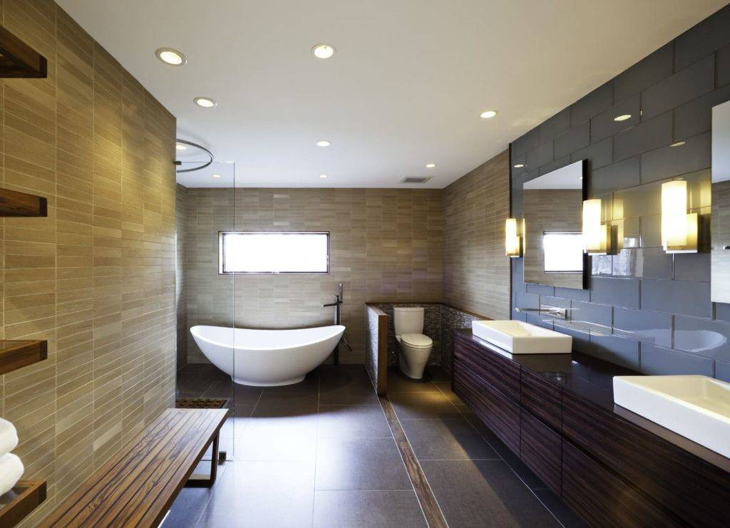 Если ванная комната достаточно просторная, то необходимо предусмотреть зональное освещение, особенности которого будут зависеть от конфигурации помещения, дизайнерской задумки и некоторых других факторов.