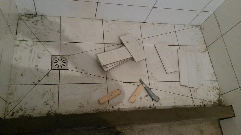 Плитку пола монтируют на клей с песком, клей без песка может дать усадку. Все остальные ряды кладутся по уровню уже с созданным уклоном.