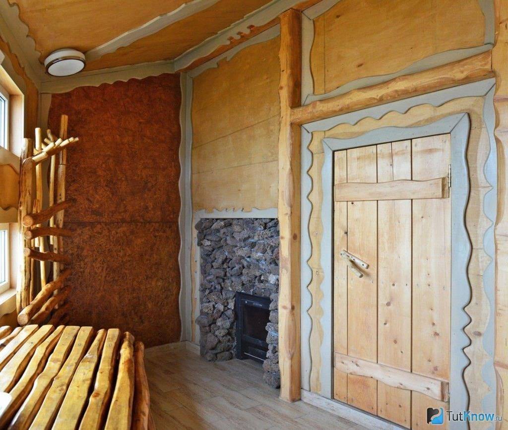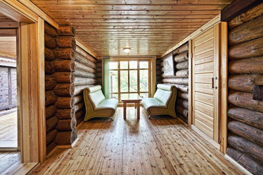 В предбаннике (или тамбуре) должно быть также тепло. Но в этой части бани нет такого жара, как в парной. Потому можно без опасений задействовать хвойную древесину. Ее приятный запах принесет дополнительную пользу.