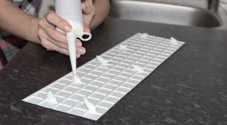 Нанесение клея на панель ПВХ