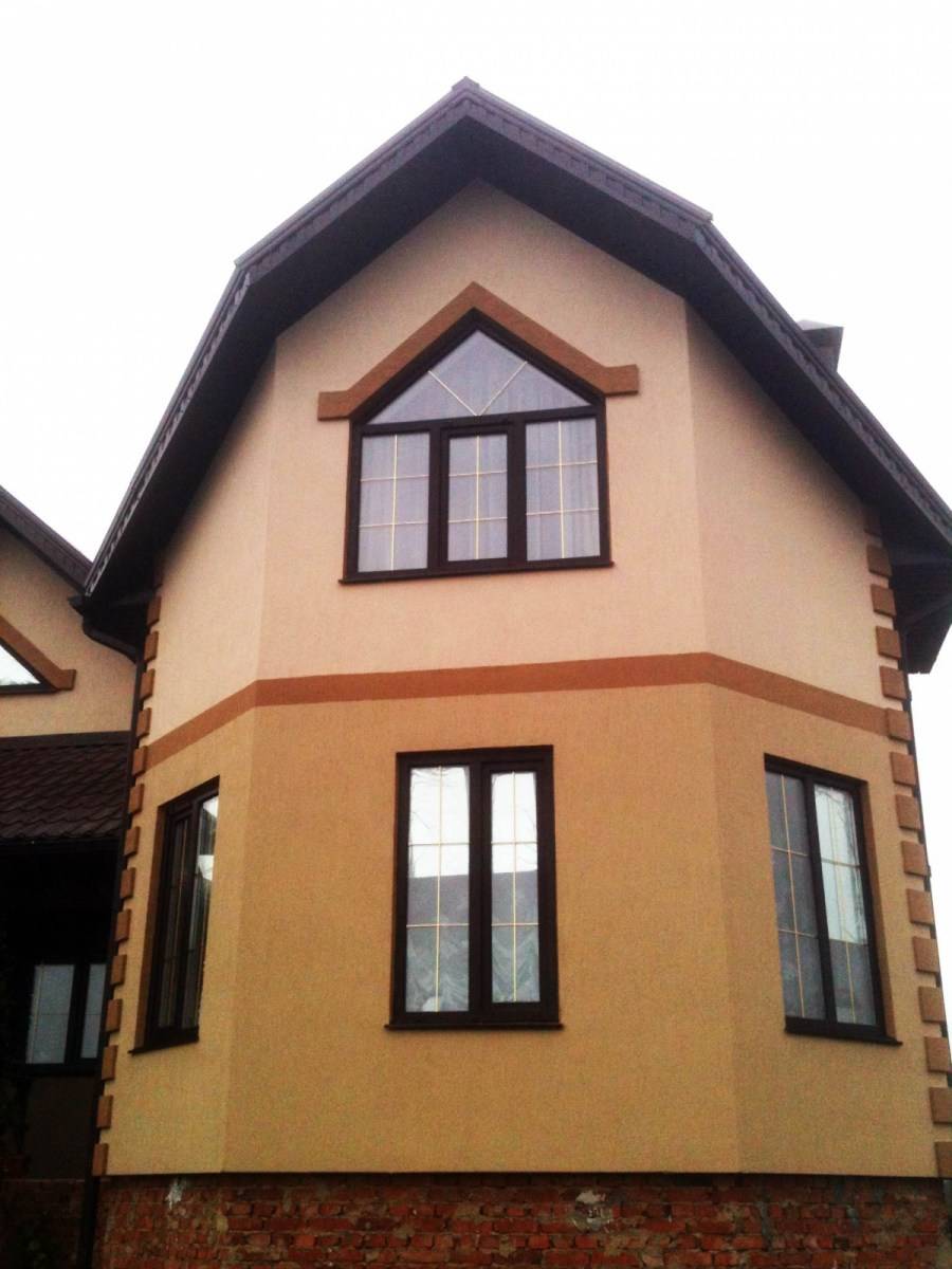 Штукатурка представленного вида для фасада в сочетании с плиткой – это нестандартное решение, которое используется для нетривиального преобразования частного дома. На первый взгляд, кажется, что это странное решение, но если вникнуть в техническую суть и общие декоративные элементы, то можно сделать заключение, что это привлекательное решение. Такое сочетание порадует потребителей в плане обустройства частного дома стилем и удобством в последующем применении.