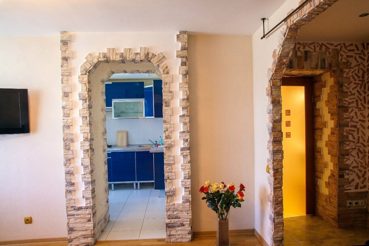 Отделка арки камнем