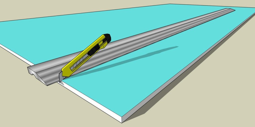 - Материал раскараивается после предвартельно нанесённой разметки с помощью стандартного строительного ножа.