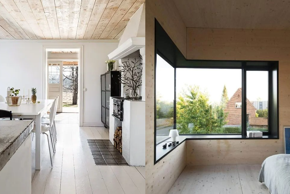 Эстетические возможности ламината вкупе с его доступностью могут «развязать руки» дизайнерам. Эффект побитой временем амбарной доски, глянцевое дерево в стиле 70-х, сочетание плашек разных цветов, паркетная «ёлочка», экспериментальная укладка или светлая скандинавская нейтральность — есть где разгуляться творческой мысли.