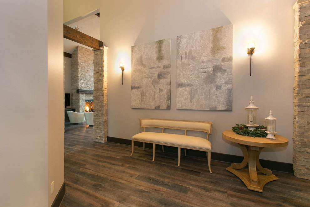 Пример прихожей, где отделка стен камнем настолько совершенна и продумана до мелочей, что хочется петь оду тому дизайнеру, что сотворил этот уникальный проект.