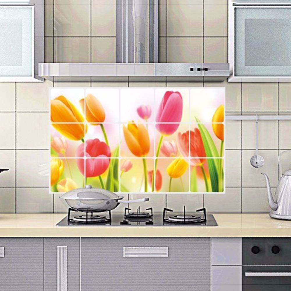 Поклейка не отличается от обычного процесса – выравнивают и грунтуют стену, после чего аккуратно совмещают части и разглаживают поверхность. Выдерживают необходимое для высыхания время, после чего наносят влагостойкую моющуюся краску. Впоследствии можно менять цвет хоть дважды в год, что очень удобно, ведь если будет заменена мебель, переделывать фартук не придется.