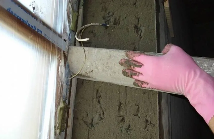 В первую очередь мастер выполняет подготовку откоса. Для этого удаляется пыль, жирные пятна, поверхность стены пропитывается антисептирующим составом. Для повышения адгезии со штукатурным составом выполняется грунтовка откоса.
