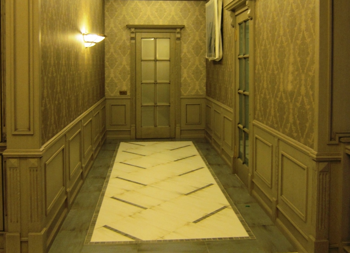 Для небольших интерьеров лучше выбирать композицию цветов на основе гармонии, оперируя оттенками одного цвета. В просторных коридорах можно позволить игру цвета, контраста. Отлично работает сочетание темный пол и светлые стены: