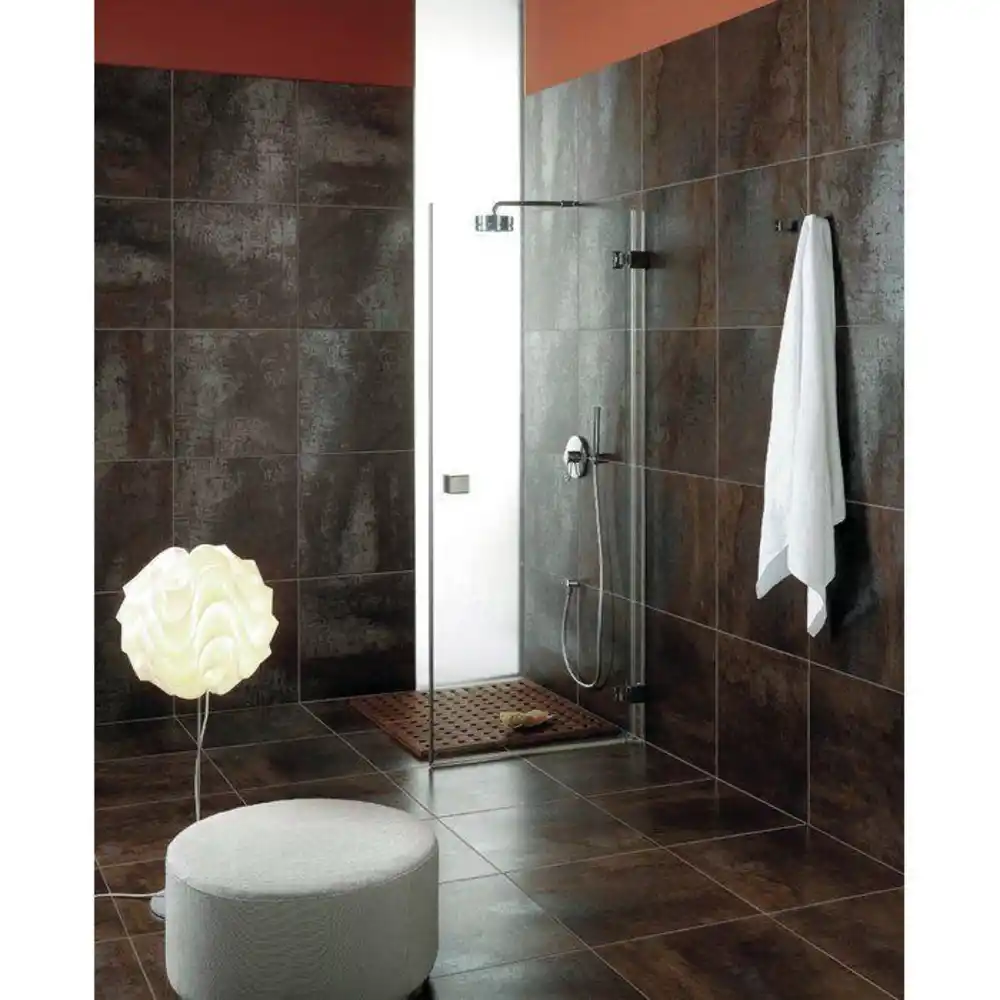 Можно купить плитку, в которую добавлены частицы металла. Благодаря такому материалу в ванной появится золотой или серебряный блеск. Старайтесь правильно сочетать этот материал с другими поверхностями и не перенасыщать интерьер яркими элементами.