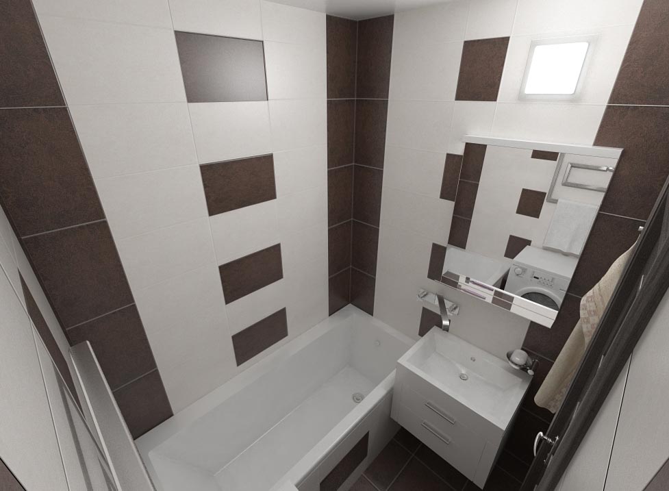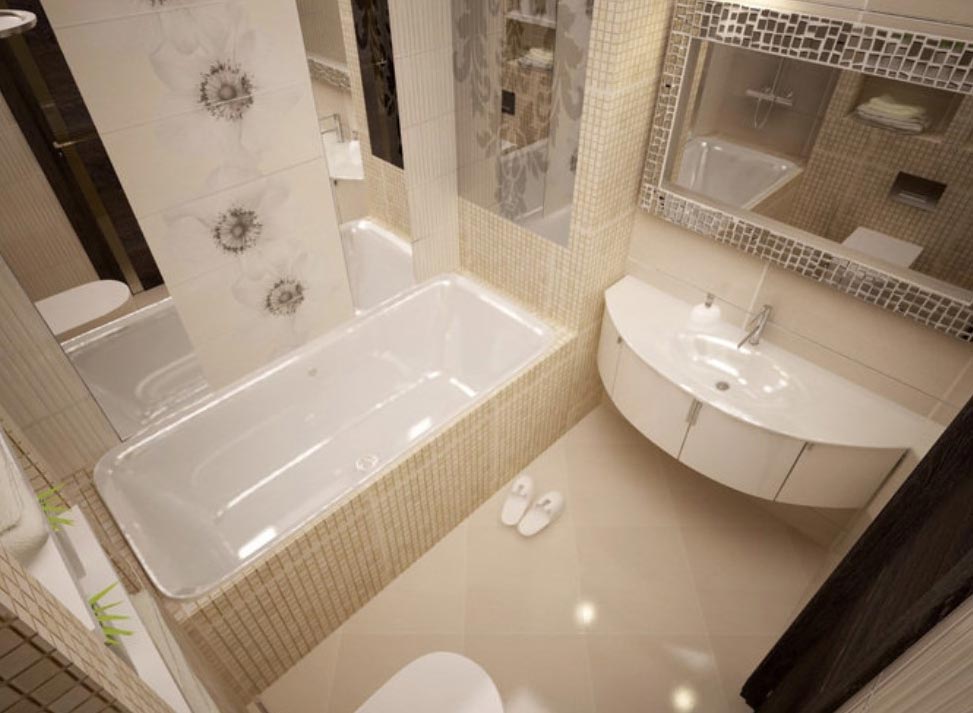При реализации проекта можно воспользоваться готовыми идеями дизайна интерьера. Оригинально выглядит комбинирование 3 типов плит при отделке поверхностей, используются блоки прямоугольные средних габаритов, квадратные элементы и мозаичная кладка. Оттенки должны соответствовать выбранному стилю и тональности гаммы. При реализации схем необходимо учитывать комплектацию ванной.
