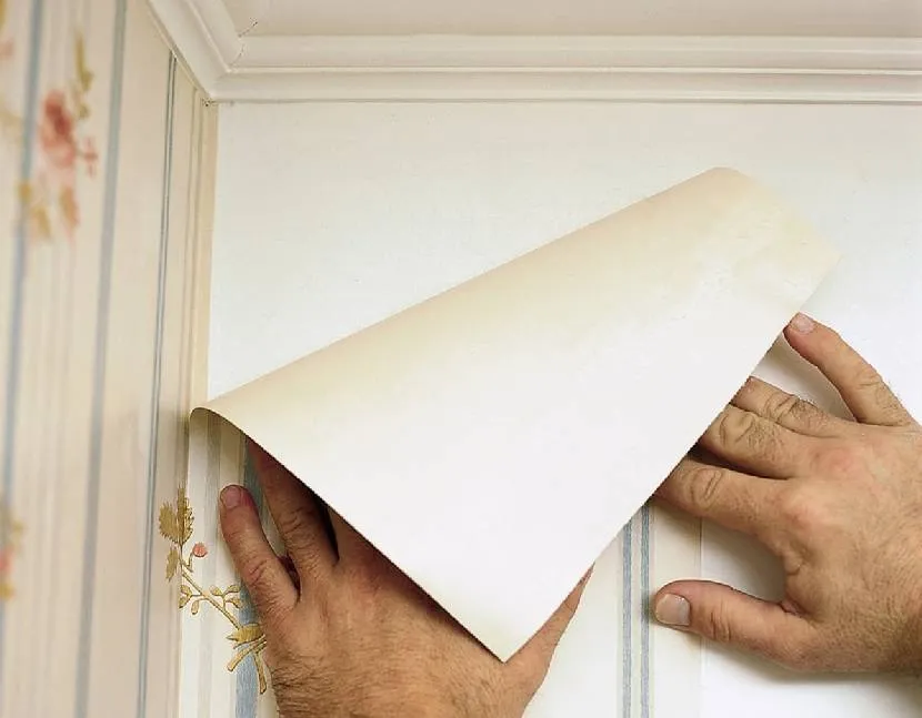 - Аккуратно отогните края, по максимуму очистите участок стены, который находится под ними, от пыли, шпатлевки.