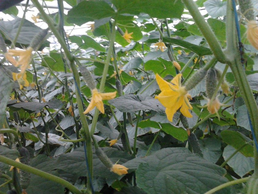 - В последней зоне (это верхняя часть побега) оставляют 3 листика и 3 огурчика.