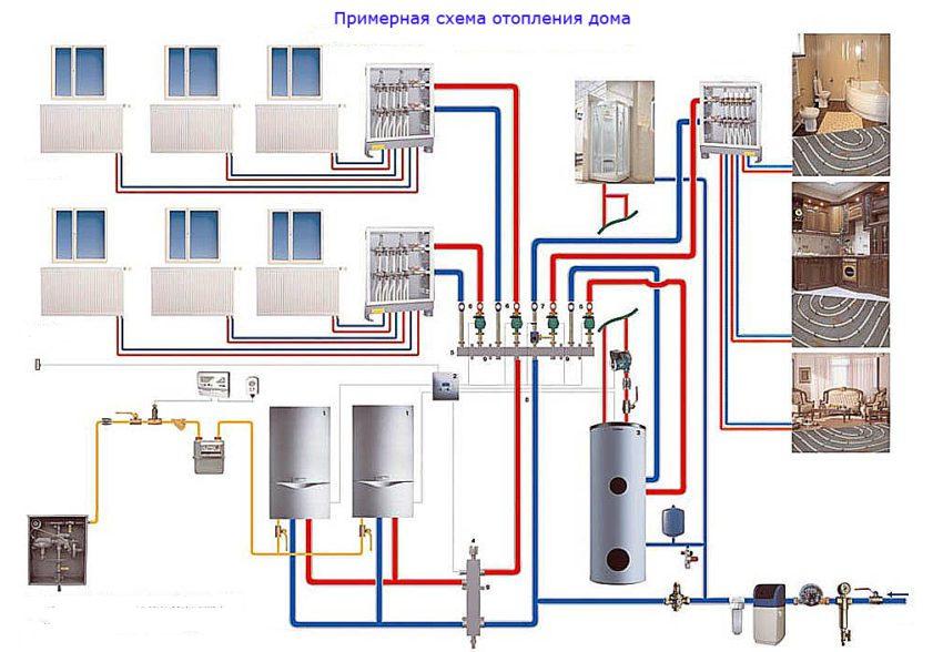 Коллекторная система может включать радиаторную разводку или систему теплого пола, также можно встретить комбинированные варианты.
