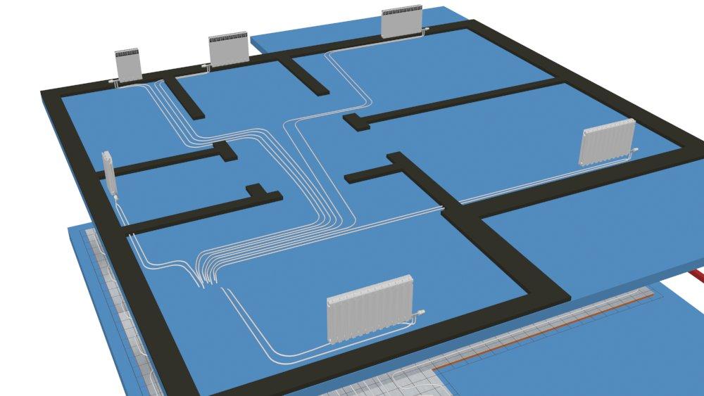 Коллекторная разводка значительно отличается от классической однотрубной или двухтрубной. При установке радиаторов отопления в доме коллекторная разводка обеспечивает равномерное распределение тепла и обогрев всех помещений. Кроме того, установка коллектора с радиаторами позволяет снизить теплопотери (в сравнении с классической разводкой).