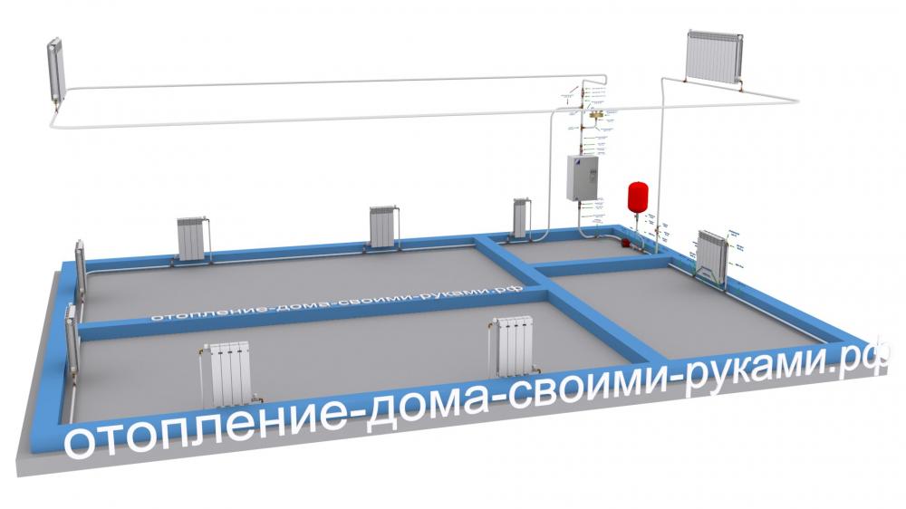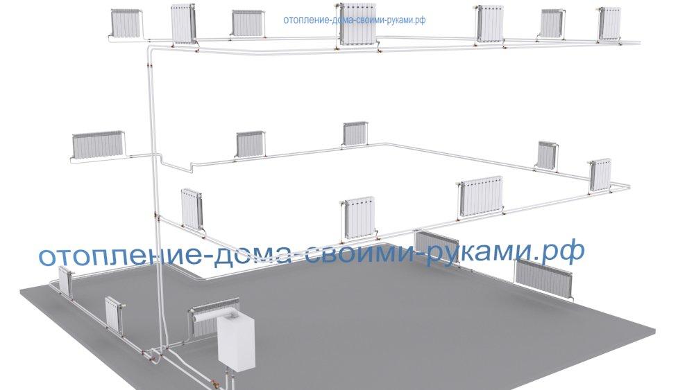 Использование этой схемы облегчает управление регулировки температуры каждого отопительного прибора.