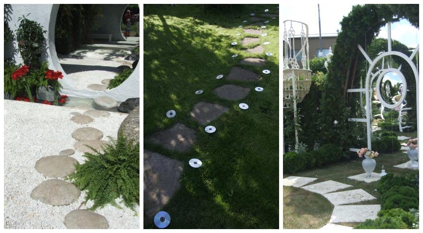 Есть один любопытный материал, схожий по эффекту с зеркальными идеями – это СД-диски. В основном, они используются для декора сада в современных стилях. Из них делают садовую подсветку – отражатели для стационарных светильников, в таком случае их подвешивают или просто раскладывают в непосредственной близости от таких светильников. Ими декорируют различные ширмы, а также из них делают украшения для цветников или фасадов построек. Но и для садовой мебели их тоже можно применять – например, для декорирования столешниц. Точно так же, как зеркала, СД-диски можно использовать для декора цветочных контейнеров и ящиков. С практичной точки зрения, диски, подвешенные на плодовую культуру – вишню, сливу, черешню, смородину – лучшее средство от птиц, так как птицы боятся не просто блестящих предметов, а тех, которые сильно отражают свет, либо зеркальных.