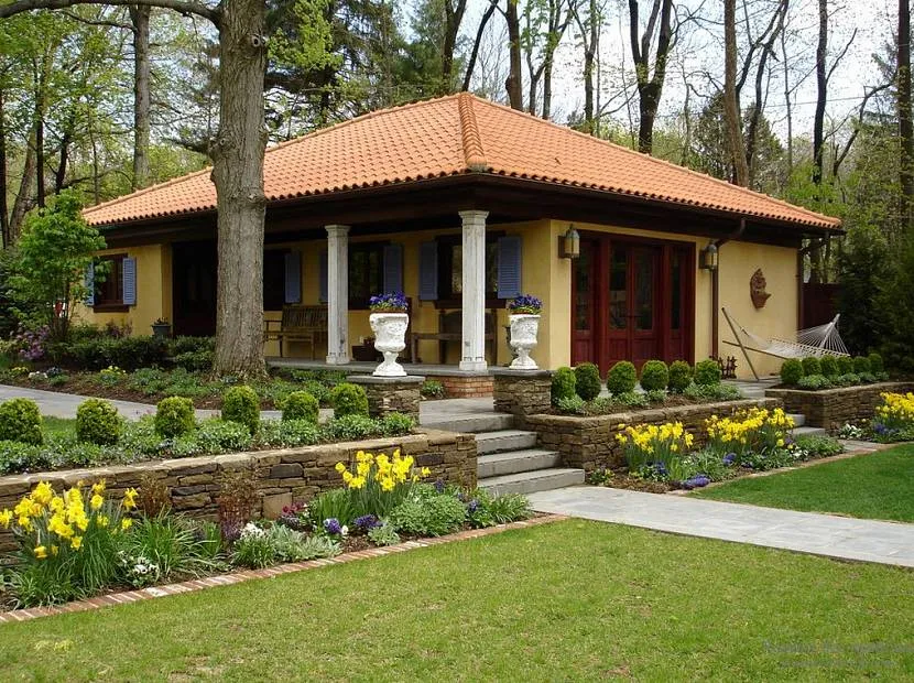 - Палисадник должен сочетаться по стилю с садом, домом, всеми имеющимися постройками поблизости.